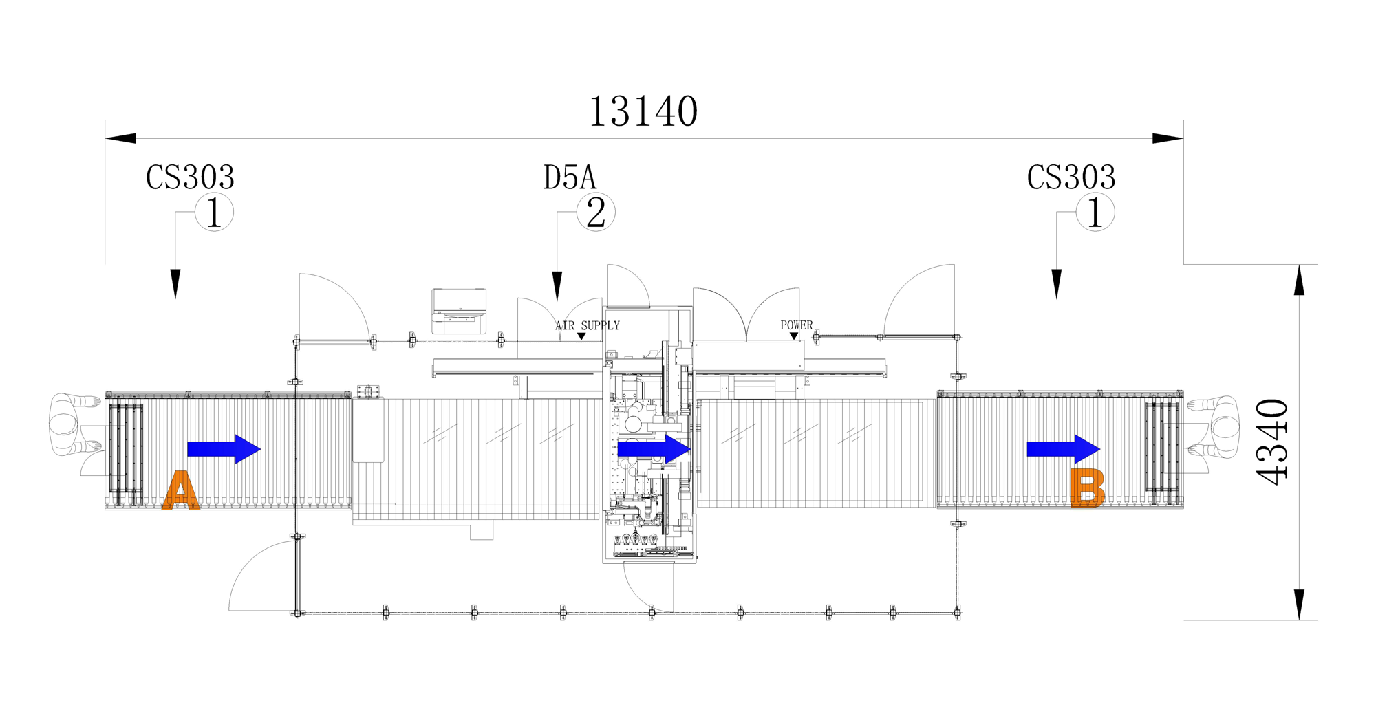 - 滚筒传动采用变频控制,工作速度最高26m/min,工作气压0.6Mpa。